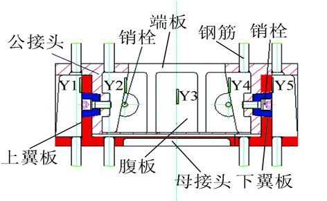 由济南R1线工程的预制方桩受弯承载力试验结果可知,采用承插式桩接头的预制方桩的受弯承载力取决于接头的承载性能,由此提出了该预制方桩受弯承载力极限状态的检验标志为桩身挠度、裂缝宽度达到规范限值或桩接头屈服,以此给出预制方桩的受弯承载力计算式,同时对预制方桩的受力变形过程进行阶段划分。结合数值分析方法,分析了预制方桩各受力阶段的桩接头受力变形特征,建立了桩接头的受力变形模型,验证了以Tresca屈服准则判别桩接头屈服的正确性,并推导了桩接头受弯承载力计算式,并以试验结果验证了该式的正确性。结果表明:当桩接头材料达到屈服强度时,挠度、裂缝宽度均远小于规范限值。桩接头上部受压区初始以销栓传递应力给腹板、上翼板,腹板、上翼板与端板接触后,由腹板、上翼板直接承受压应力;下部受拉区以销栓传递应力给腹板、下翼板,由受压侧腹板、下翼板承受受拉区应力,且受拉区受压侧腹板、下翼板首先屈服,并以此作为计算桩接头受弯承载力的依据。受拉区腹板、下翼板第二主应力比第一、第三主应力小两个数量级。根据桩接头受压区分布情况,桩接头屈服时,受压区应力分布为“倒三角形”,并以此确定受压区合力位置。
