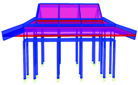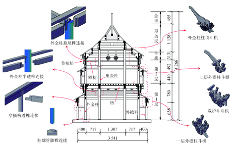 为研究传统风格建筑钢筋混凝土-钢管混凝土(RC-CFST)组合框架的抗震性能,采用三维六自由度地震模拟振动台对缩尺比为1/4的模型结构进行了El Centro波、Taft波、兰州波及汶川波等地震波输入下的试验。通过白噪声扫描得到了该模型的自振频率、阻尼比等动力特性,研究了模型结构的受力过程、破坏特征及加速度、位移、剪力和应变等动力响应。试验结果表明:随着输入波地震峰值加速度的增加,框架模型的自振频率下降,阻尼比增大,加速度放大系数逐渐减小;柱架是耗散台面地震作用的主要构件;7度罕遇地震作用下结构X、Y向的最大层间位移角分别为1/46、1/51,结构的总体刚度偏小;结构的地震剪力沿模型高度方向没有明显下降的趋势, CFST柱顶部与枋、椽连接区域及柱底为结构的抗震薄弱环节。基于研究结果, 提出了加强该组合框架抗震性能的设计建议。