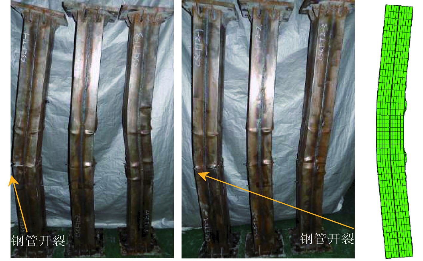 带肋薄壁复式钢管混凝土柱具有较好的耐火性能和经济性,同时钢管混凝土构件多用于地震频发区域,因此有必要研究其抗震性能。以轴压比和内管外径为主要参数,进行了6根带肋薄壁复式钢管混凝土压弯柱的低周反复加载试验。试验结果表明:该类组合柱的滞回曲线饱满,具有良好的抗震性能,其承载能力和耗能能力明显高于带肋薄壁钢管混凝土对比柱;该类柱均为面内压弯破坏;随着轴压比的增大,试件的延性、累积耗能随之减小,后期刚度退化加剧;随着内管外径的增大,试件的承载力、延性和耗能能力提高,但内管外径对刚度退化的影响较小。建立了带肋薄壁复式钢管混凝土柱的有限元模型,并利用试验结果检验了模型的准确性。基于该模型开展参数分析,结果表明钢管屈服强度、外部混凝土强度、轴压比、径宽比、径厚比和长细比等参数对该类构件的承载力影响较显著。最后基于参数分析,建议了荷载挠度恢复力模型。