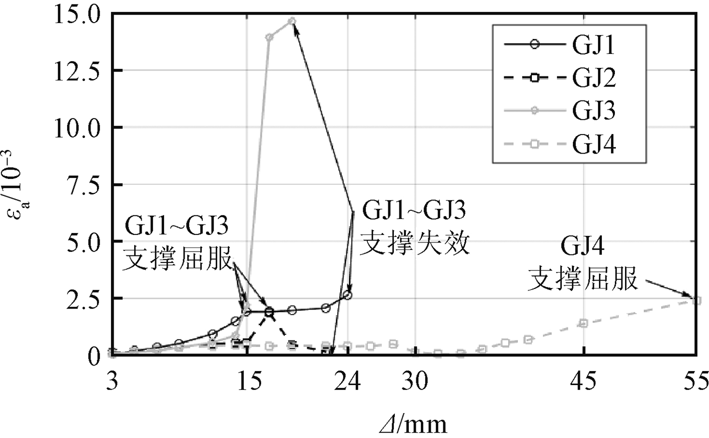 为改善墙板内置钢板支撑的延性,避免钢筋混凝土墙板局部冲切破坏,便于检修内置支撑和减小墙板自重,提出了轻质组装墙板。通过对6个组装墙板内置钢板支撑的试验研究,考察了支撑和墙板的厚度、支撑与墙板间的间隙等构造对支撑滞回性能的影响。试验表明,轻质组装墙板内置Q235钢板支撑具有良好的延性和耗能能力。总体上,墙板内置支撑破坏前骨架曲线呈双折线,支撑屈服后因钢材应变硬化以及支撑和墙板间摩擦等因素,支撑的承载力随侧移的增加而增大。达最大侧移角约1/25时,受拉承载力调整系数范围为1.36~1.61。侧移角在1/25以内时,受压承载力调整系数均小于13,支撑的轴向累积非弹性变形能力远大于200,均满足美国ANSI/AISC 34116的要求。试件最终因内置支撑受拉断裂而破坏,破坏前滞回曲线饱满稳定。组装墙板保持完好,可重复利用。支撑与墙板间留置适宜间隙后,受压支撑在墙板孔壁内仅发生微幅多波弯曲变形,避免了墙板局部破坏。当仅考虑支撑附件的主钢管和开孔钢板简化计算墙板绕钢板支撑弱轴的欧拉临界力,墙板的欧拉临界力与内置支撑的最大轴向受压承载力之比(约束比)达1.15~2.42,墙板内置支撑不发生受压整体失稳。
