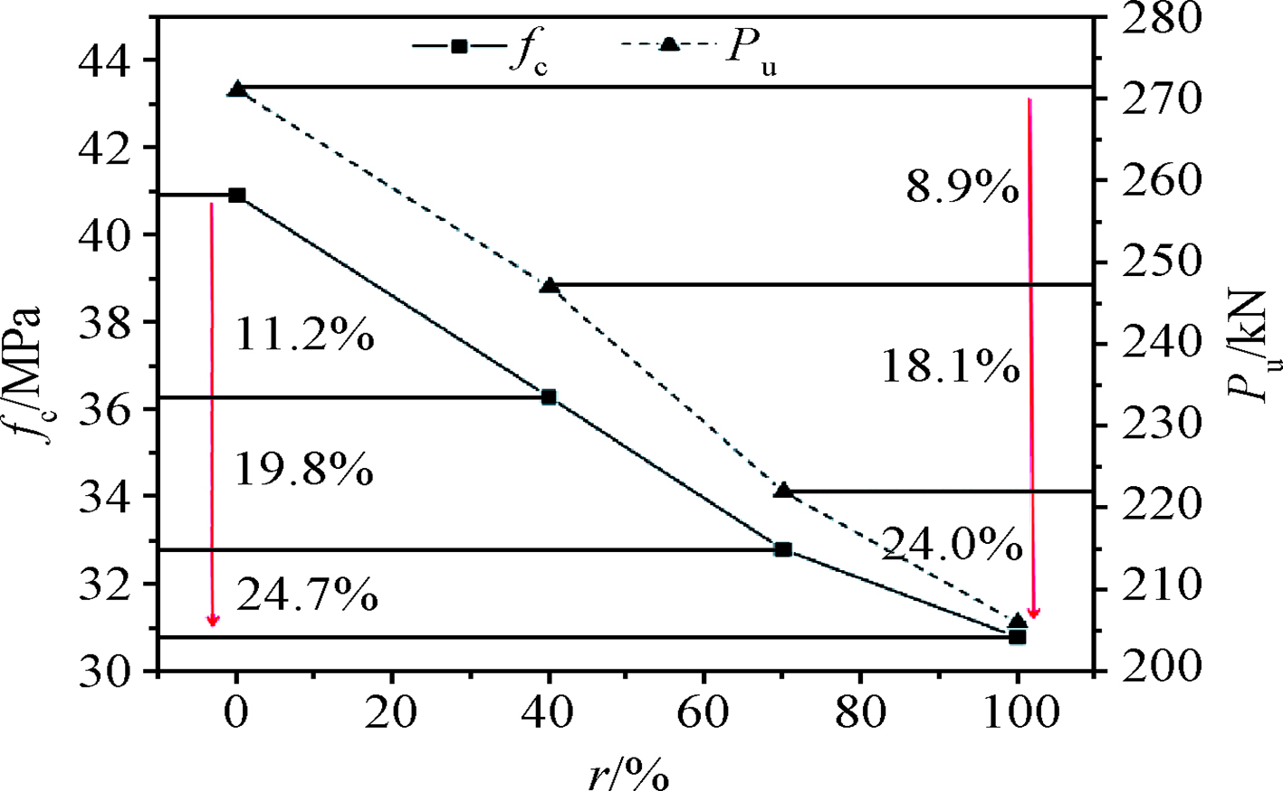 为了研究再生混凝土梁长期受弯性能,针对3个不同再生粗骨料取代率(0%、50%和100%)的再生混凝土梁进行了3045d的长期加载以及长期荷载卸载后的受弯性能试验,并将再生混凝土梁在不同阶段的裂缝及变形发展规律与普通混凝土梁进行了对比分析。结果表明:与普通混凝土梁相比,再生混凝土梁裂缝分布具有间距较大、次生裂缝数量较多的特点;再生混凝土梁长期变形具有后延性,在长期荷载卸载后表现出更多的变形恢复特征;卸载后受弯试验过程中,再生混凝土梁钢筋屈服荷载和极限荷载值与普通混凝土梁相比均降低;提出了长期荷载移除后再生混凝土梁二次加载受弯承载力计算公式,建议实际工程的二次受弯承载力折减系数取值为0.85。