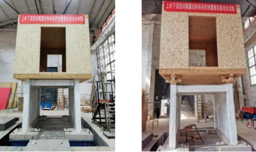 针对轻木-混凝土混合结构在地震作用下上部木结构反应放大的问题,提出在两种结构层间采用木制隔震装置形成隔震体系,并设计两层足尺模型进行地震模拟振动台试验,研究该体系的层间隔震效果。依次输入峰值加速度为0.10g~0.40g的3种地震波,分别对层间隔震模型和非隔震模型在纵横向的地震响应进行试验研究。结果表明:木制隔震装置有效降低了上部轻木结构的加速度反应,隔震层上下最大加速度降幅可达38%;隔震结构的相对位移集中于隔震层,上部轻木结构的层间位移较小,起到了良好的隔震作用;罕遇地震作用下,隔震层发生明显的相对位移,Taft波、人工波和El Centro波作用下最大相对位移分别为82.26、82.92 mm和57.2 mm,说明隔震装置能有效降低模型的地震反应,且隔震效果与输入地震波的频谱特性有关。此外,下部混凝土结构与上部轻木结构的刚度比对隔震装置的隔震效果有一定的影响,刚度比较大时,其隔震机理及效果类同于基底隔震,试验结果表明隔震效果良好;当刚度比较小时,其隔震机理及效果类同于TMD被动调谐减震,要达到理想的减震效果有待进一步的参数优化。