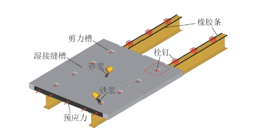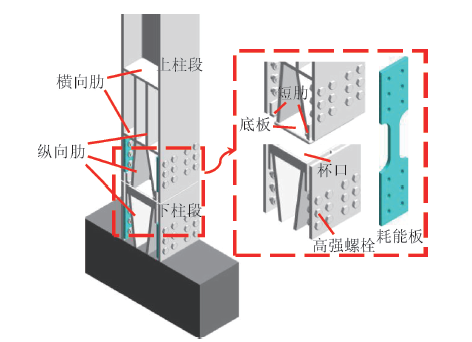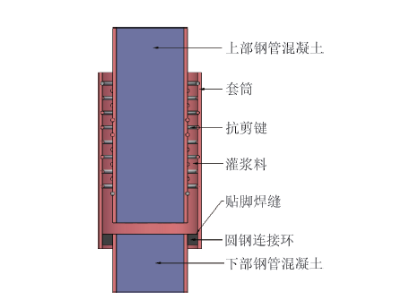 为提高钢结构模块现场安装速度,减少现场施工工序,研发了一种箱式钢结构模块混合节点。该混合节点通过先注浆后吊装的方式,将十字形角件直接插入灌浆角件浆料中连接而成。与已有的模块节点相比,该混合节点无需预留安装孔,吊装后节点区无现场作业,适应施工误差的性能提高,安装更加便捷,施工速度更快。通过一组拉伸试验和一组剪切试验,研究了混合节点的受拉和受剪承载能力。结合试验和有限元分析结果可知:节点的破坏形式为十字形截面板件的受拉和受剪破坏,浆料完整性较好;在拉伸和剪切作用下,浆料受角件侧壁、横隔板等约束,处于挤压和剪压状态,充分发挥了浆料的高强受压性能,受压状态下的浆料与十字形截面板件界面的相互作用、钢筋肋和横隔板的设置对十字形截面板件的受拉和受剪均起到很好的锚固作用;该混合节点的试验承载力大于十字形截面板件的理论承载力,充分发挥钢材受拉及受剪性能优势。综合分析结果,建议工程中可以十字形截面板件的设计承载力作为该混合节点承载力的取值依据。